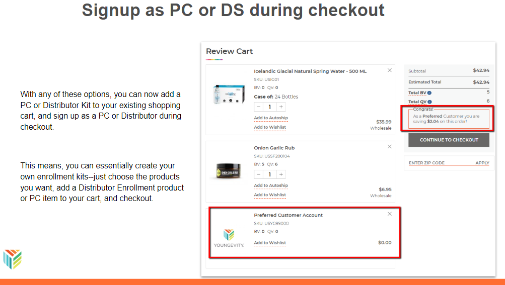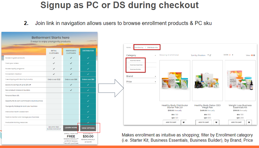Multiple ways to become a Preferred Customer or Distributor during checkout process…