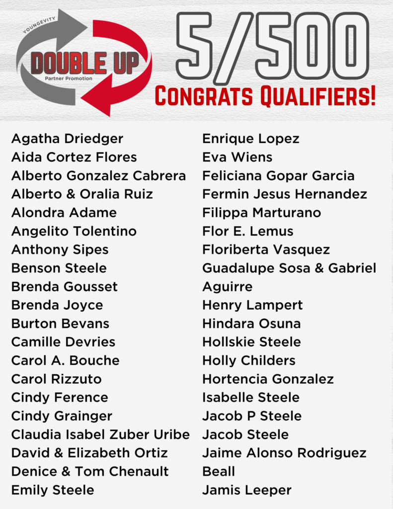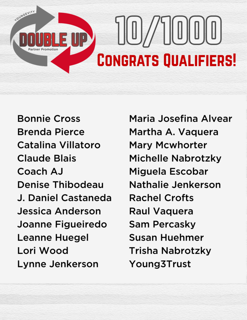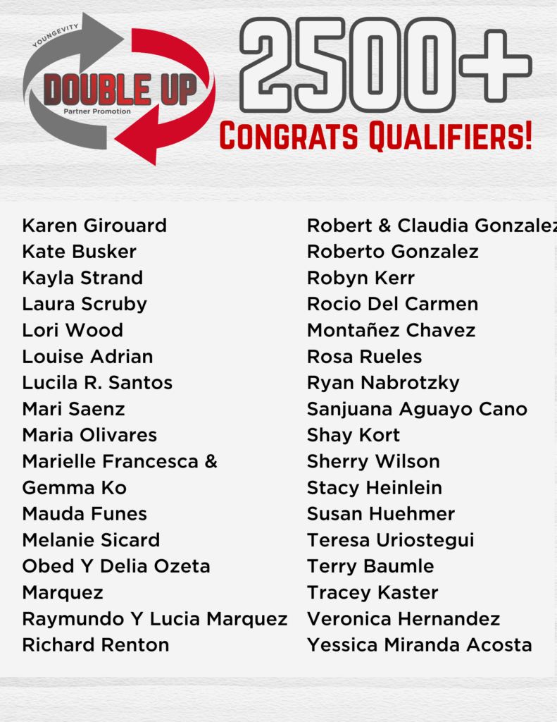 Congratulations to everyone that qualified for the 300 Club this month! Qualifying for this club each month shows that you are consistently working to grow your Youngevity business. No matter where you are in your business, it’s never to late to join the 300 Club!